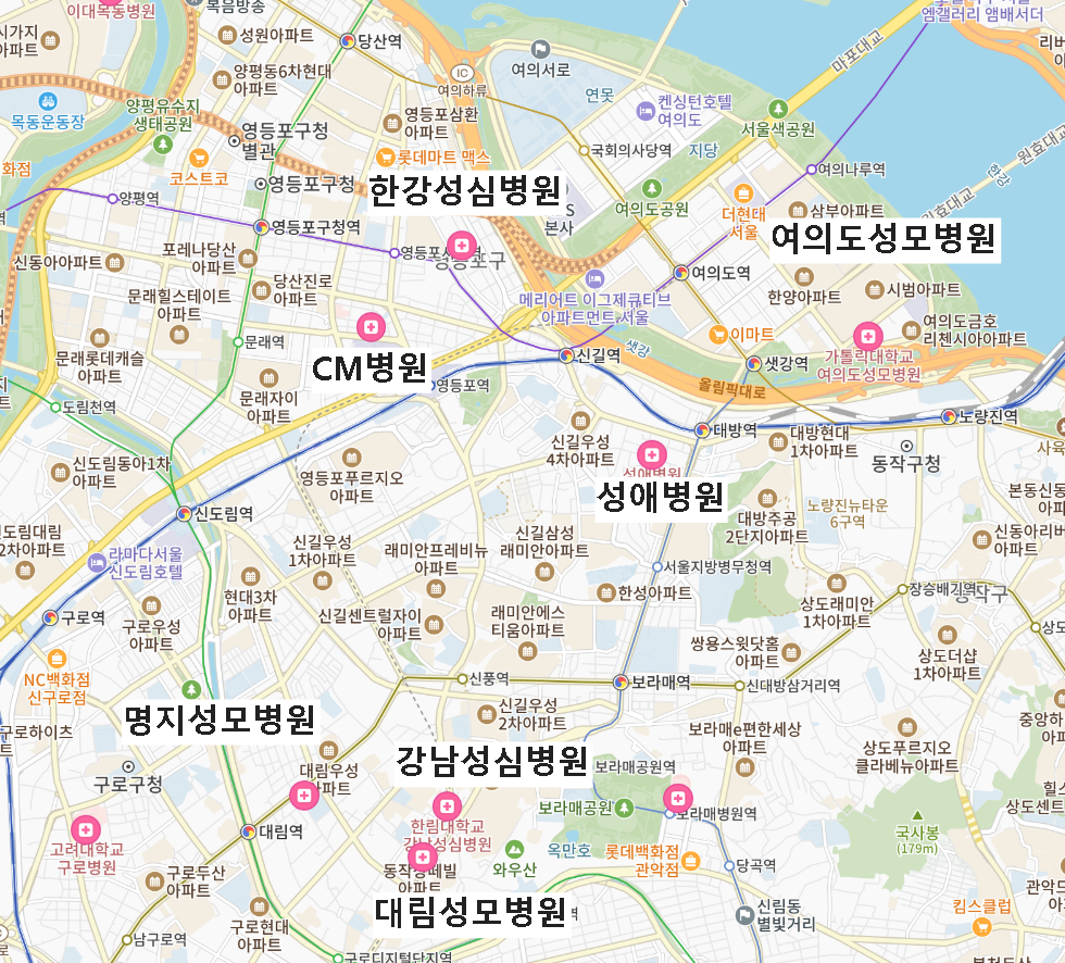 * 대학 종합병원이 많음. 강서구에는 이대서울병원만 있었음.