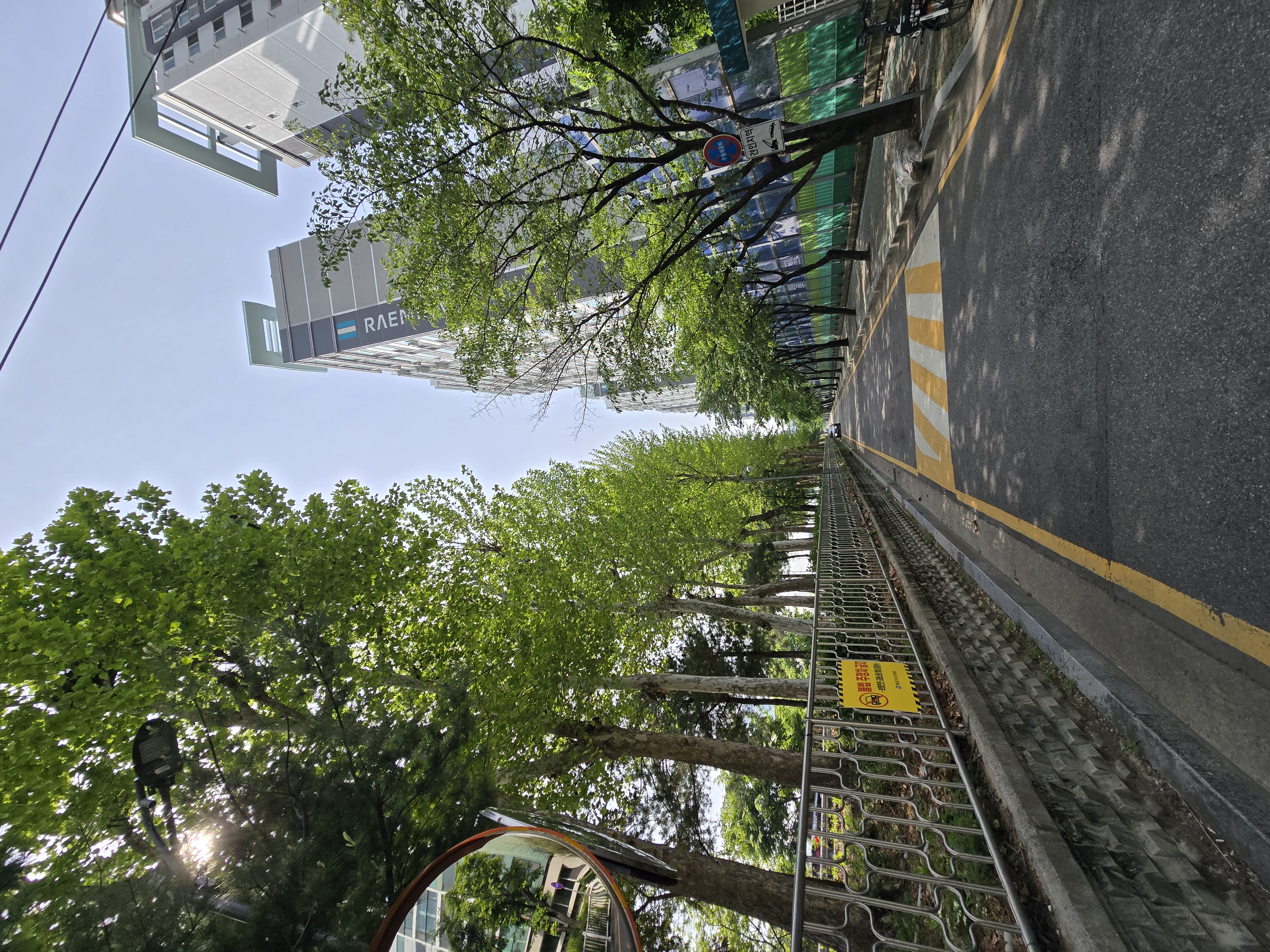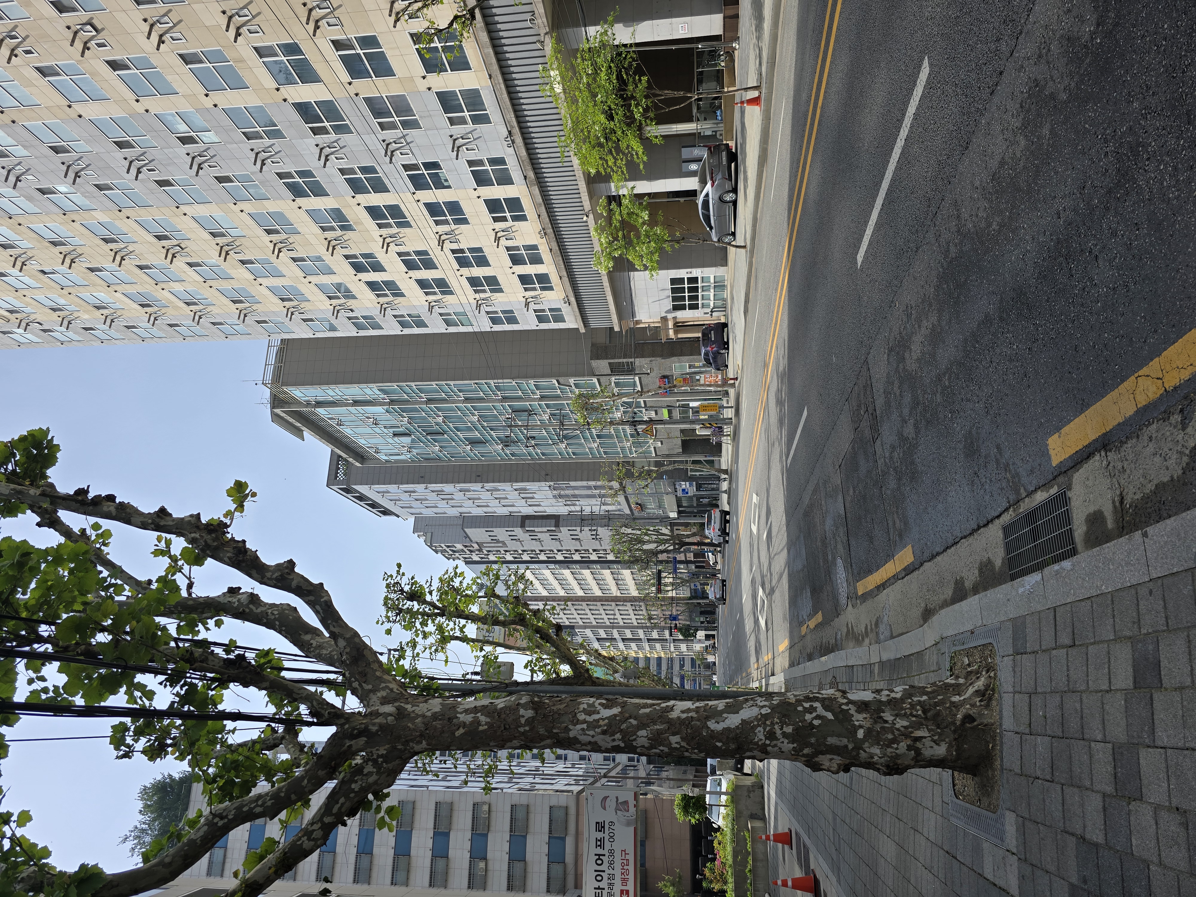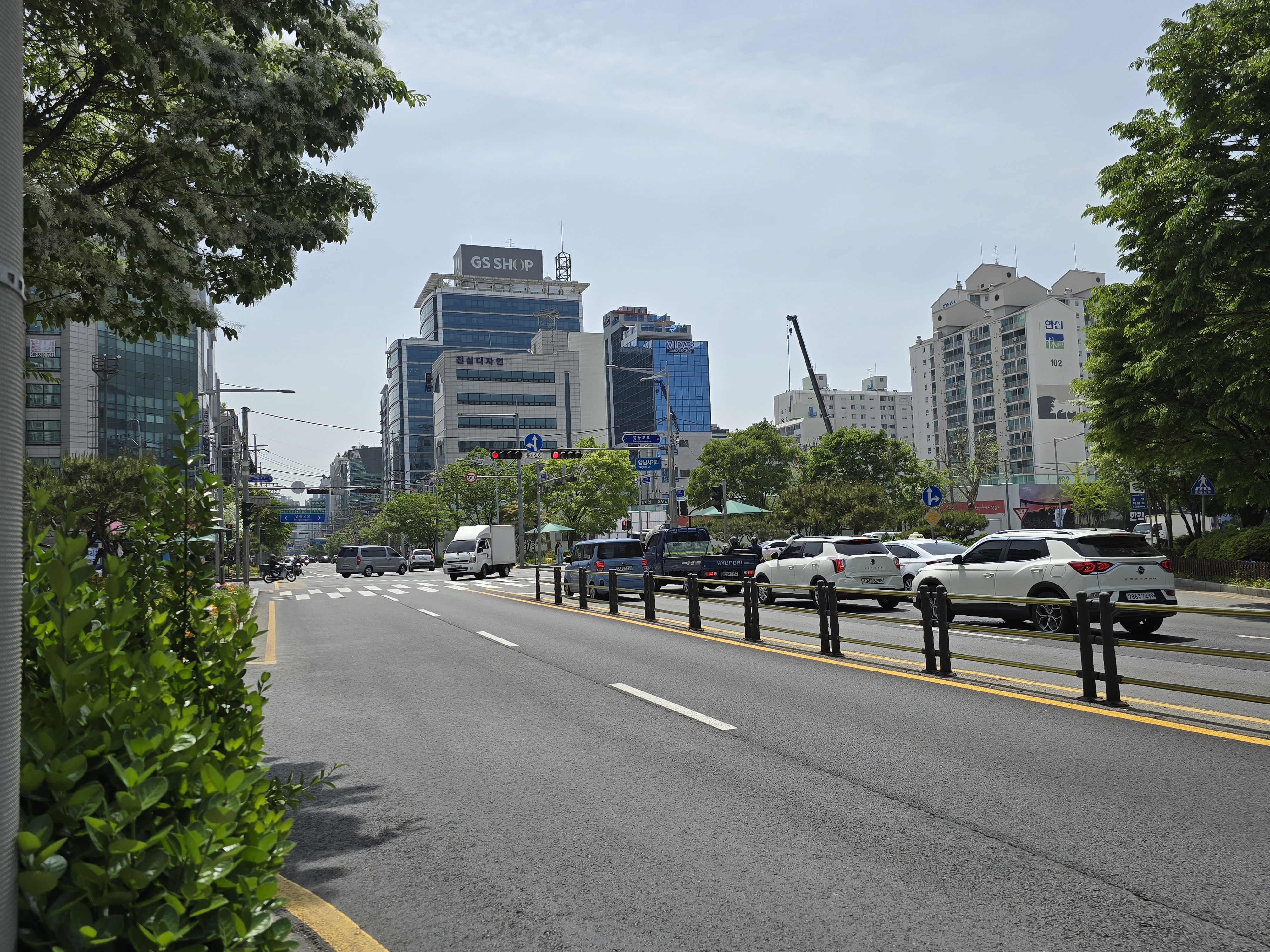 래미안 4차와 효성 사이. 도로는 넓은데 차가 적음. 조용. 아스팔트 인도 깨끗.