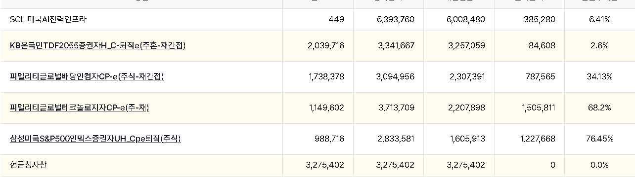 * 피델리티 글로벌테크는 68.62% → 68.2%. 다른 테크 펀드나 ETF보다 하락폭이 적습니다.
