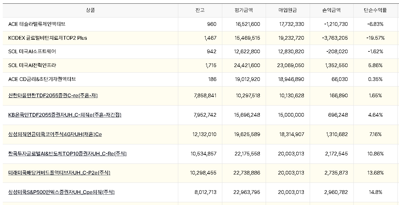 * 문제는...미국AI전력인프라였습니다. 18.09% 5.49%로 수익률이 -13% 하락했습니다.