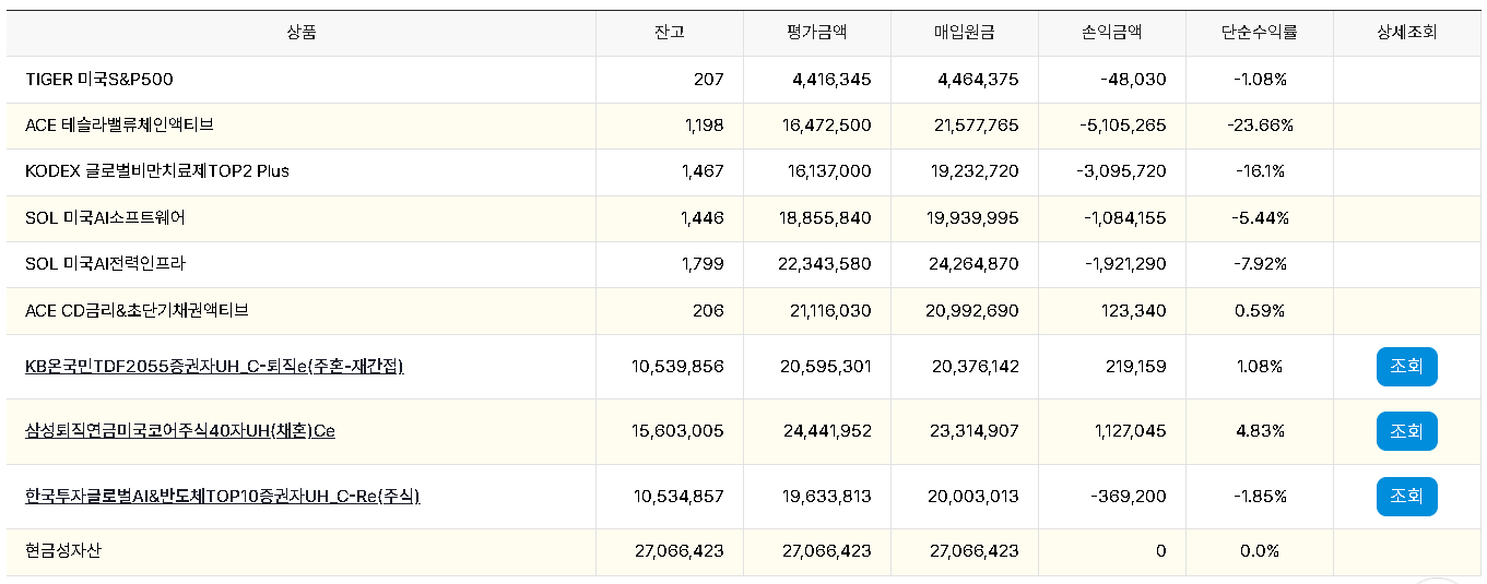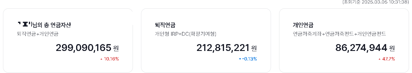 배우자님의 개인연금을 관리합니다. 1주일에 한 번씩 투자수익을 살펴봅니다.