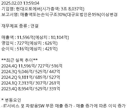 | 4Q24 어닝서프 발표 기업_250206 (0) | 2025.02.06 |