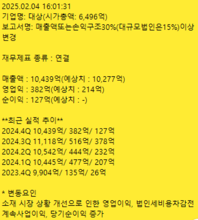 | 4Q24 어닝서프 발표 기업_250207 (0) | 2025.02.07 |