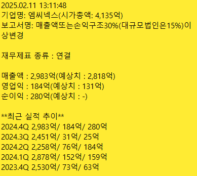 | 4Q24 어닝서프 발표 기업_250212 (0) | 2025.02.12 |