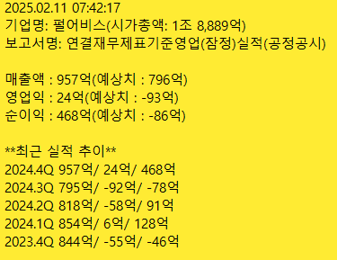 | 4Q24 어닝서프 발표 기업_250207 (0) | 2025.02.07 |